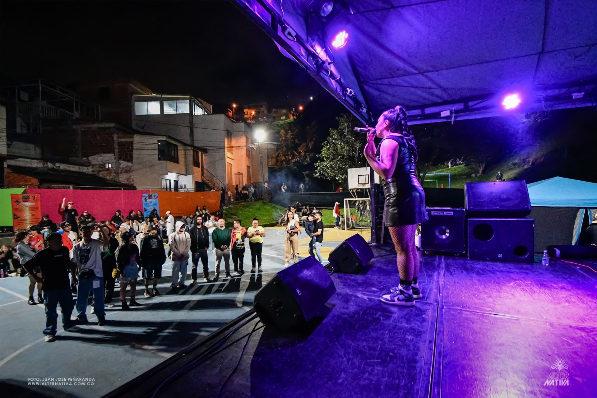 Una de las presentaciones más esperadas fue la de Diana Avella, rapera y activista bogotana reconocida por su compromiso con las luchas sociales y la equidad de género.