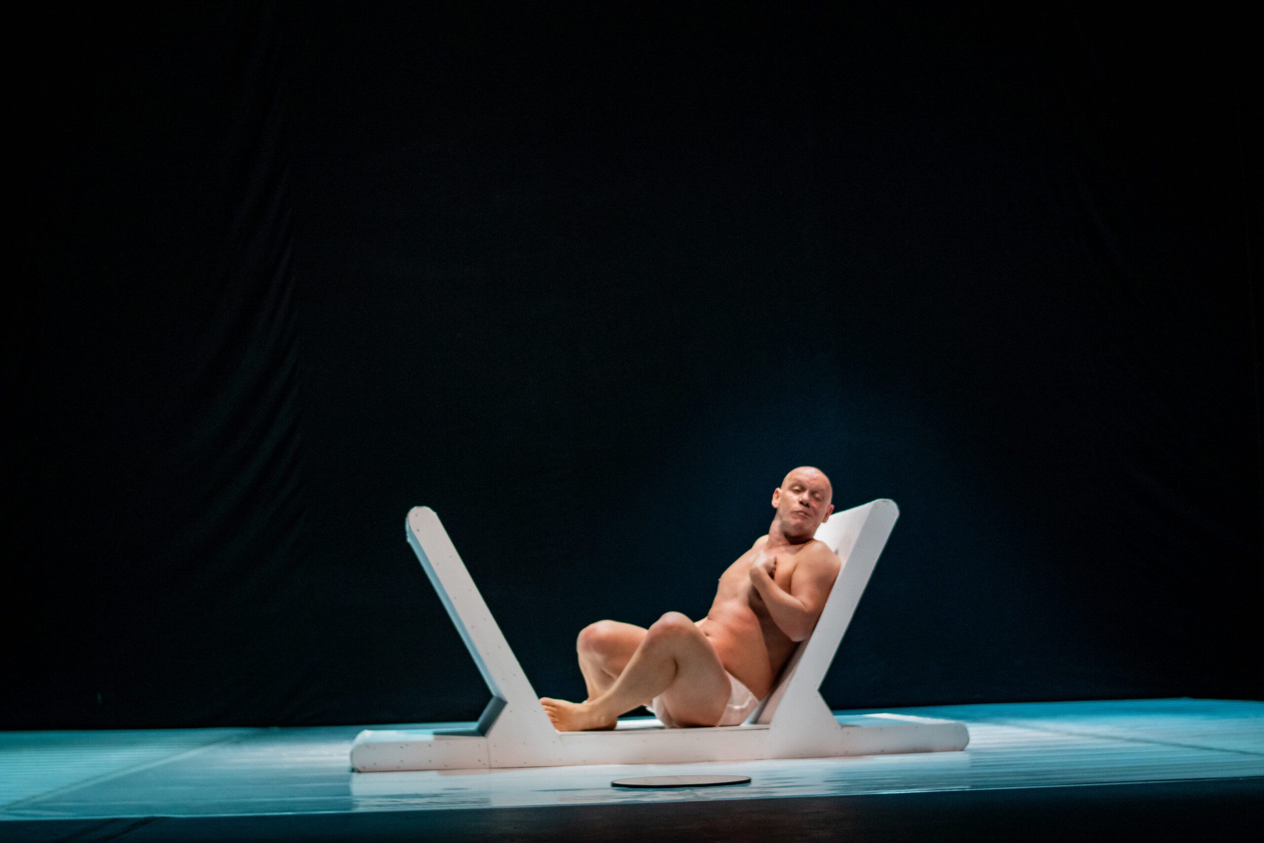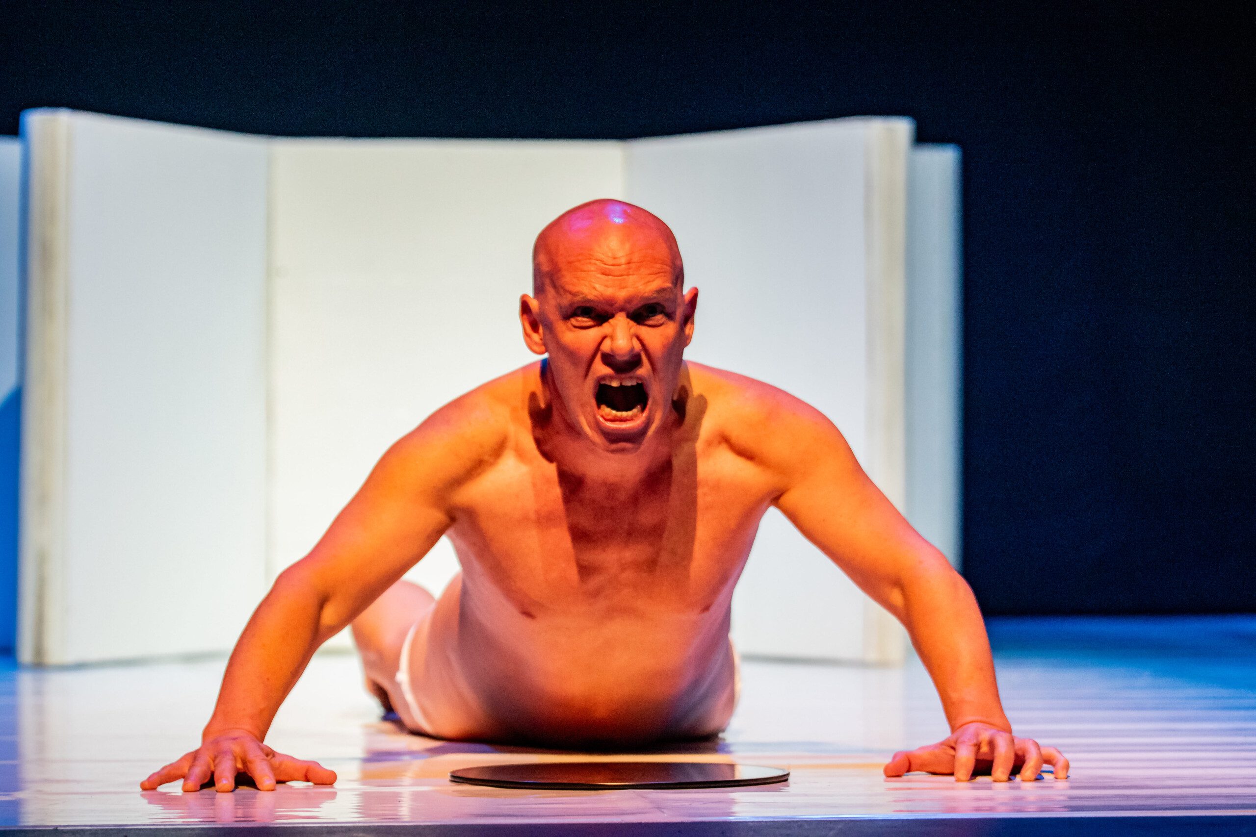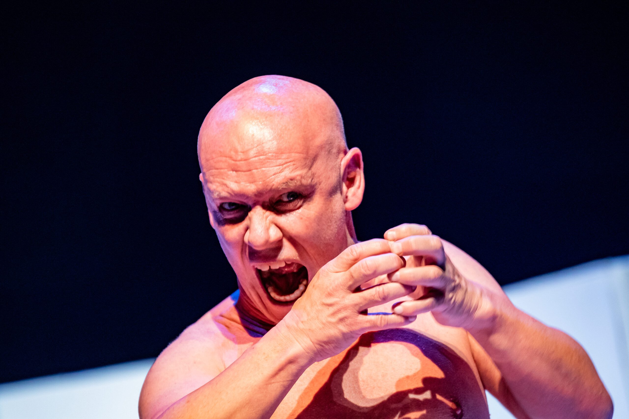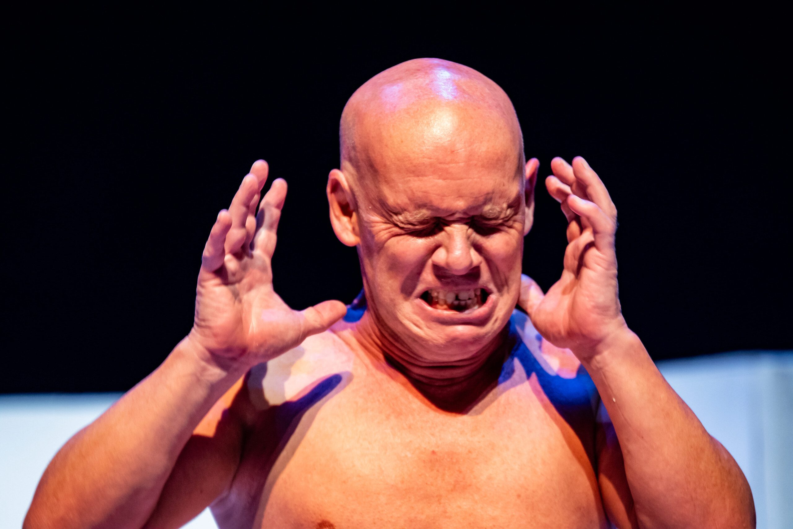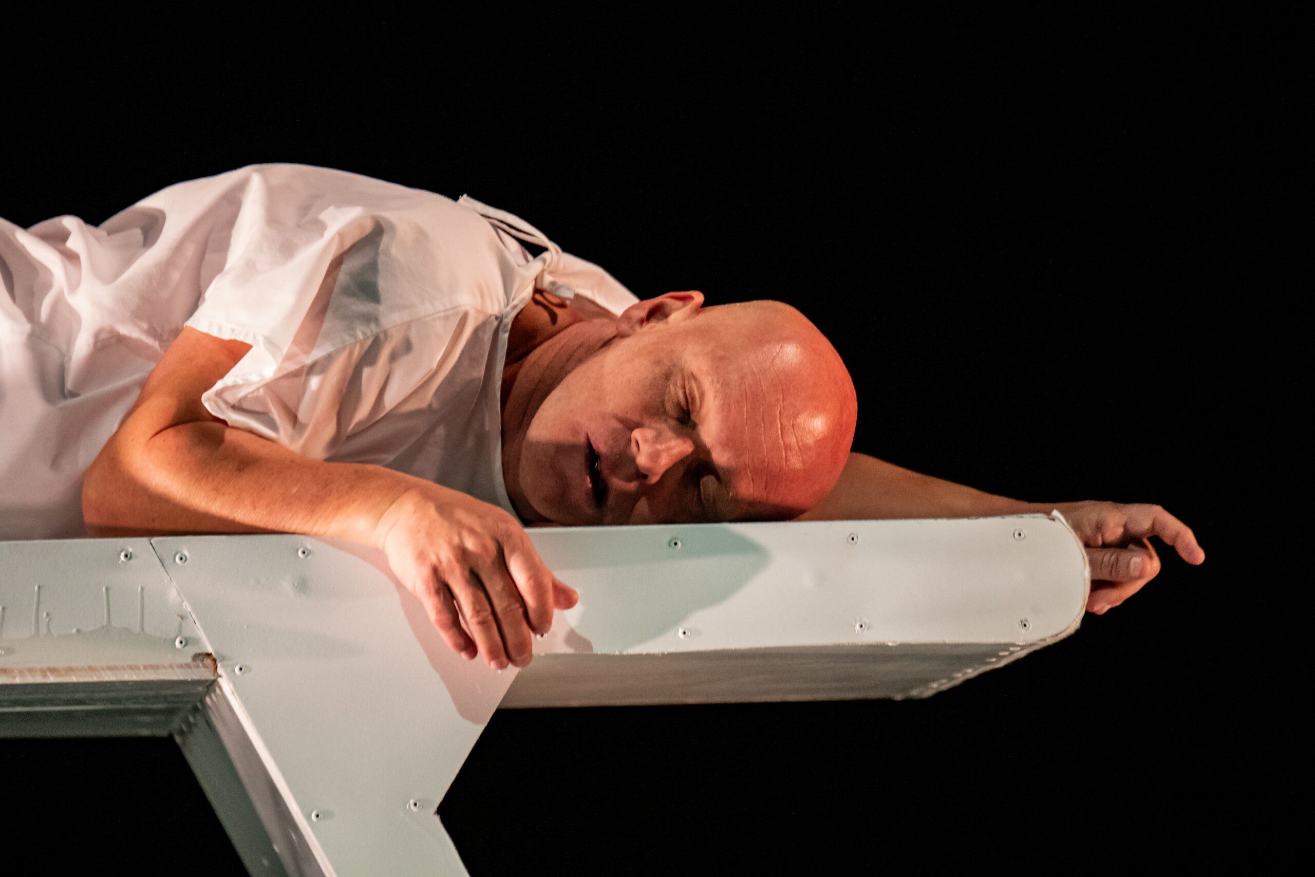 El público no asiste a una narración, sino a una inmersión en la conciencia fracturada de un hombre recluido en un hospital psiquiátrico tras cometer un acto atroz. El escenario, despojado hasta el extremo, se convierte en la proyección física de esa mente quebrada. Una mesa, un cuerpo y una luz bastan para edificar un universo interior donde la palabra se vuelve herida y el silencio, eco de lo irrecuperable. Allí, Marín no interpreta: encarna. Su cuerpo vibra, se retuerce, se quiebra. Su respiración parece marcar el ritmo de una tragedia íntima, donde el horror y la belleza se entrelazan hasta ser indistinguibles.