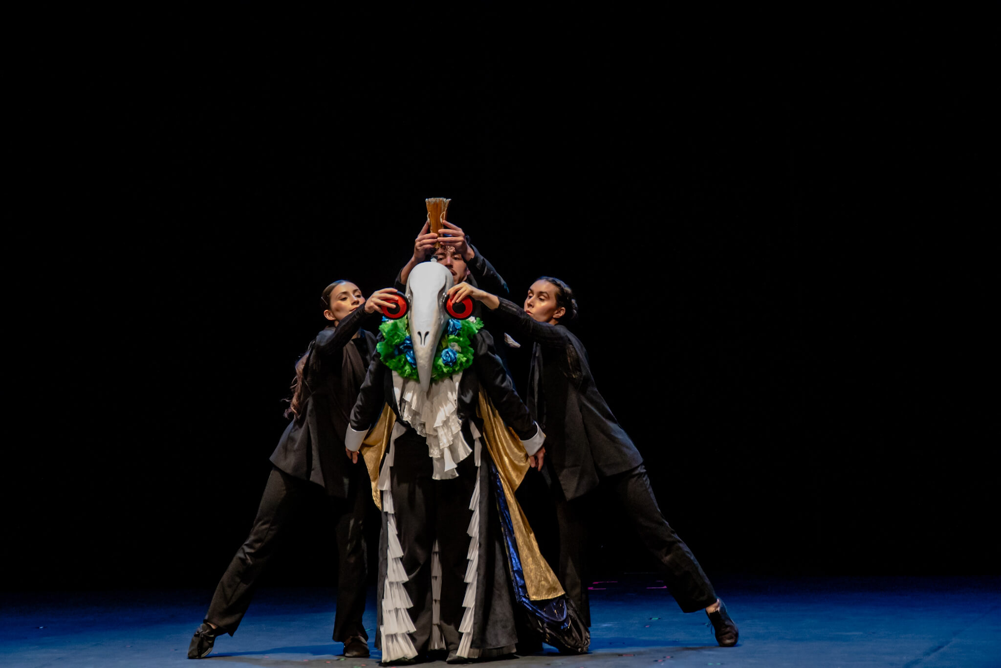 La segunda pieza de La Llave Maestra, El Carnaval de los Animales, prolonga ese mismo gesto pero en otra clave. Aquí la imaginación se expande a partir de la música de Camille Saint-Saëns y Claude Debussy, interpretada junto a la Orquesta Sinfónica de Caldas. El encuentro entre música clásica y teatro visual no es mero adorno estético, sino un diálogo entre tradición y reinvención. A los elefantes, cisnes, ballenas y libélulas que emergen en escena no los sostiene la literalidad, sino la metáfora: son imágenes para contemplar, pero también para pensar.