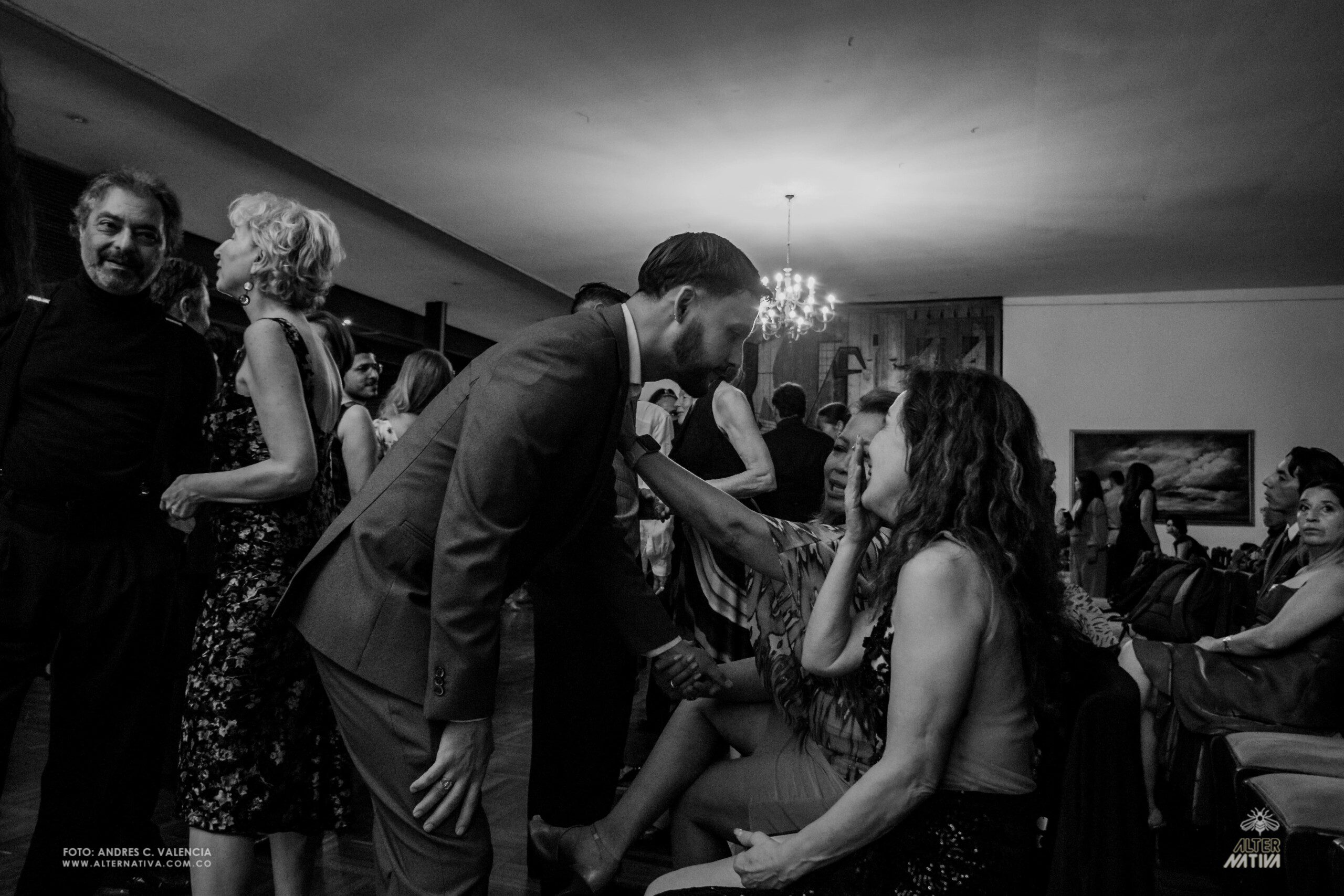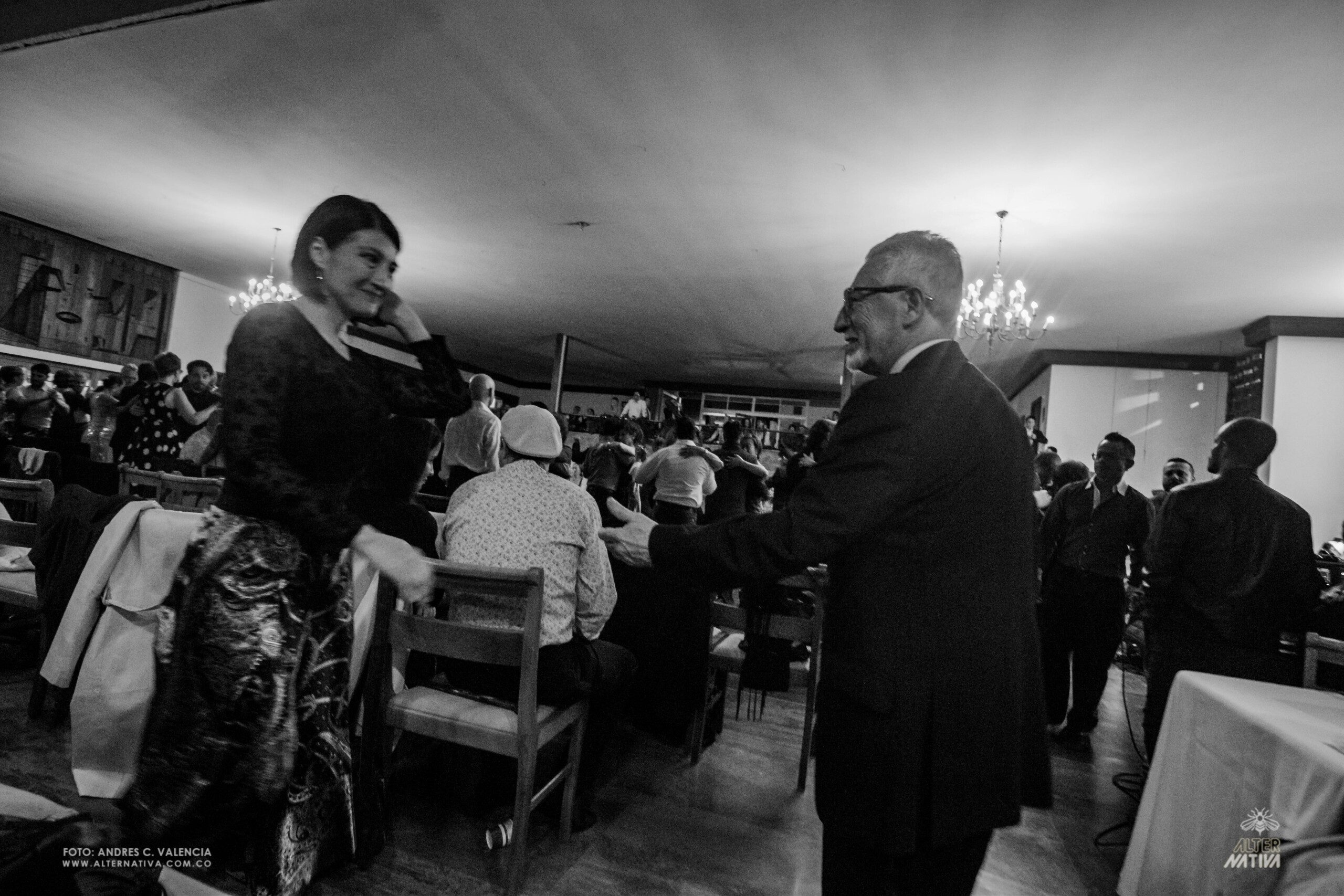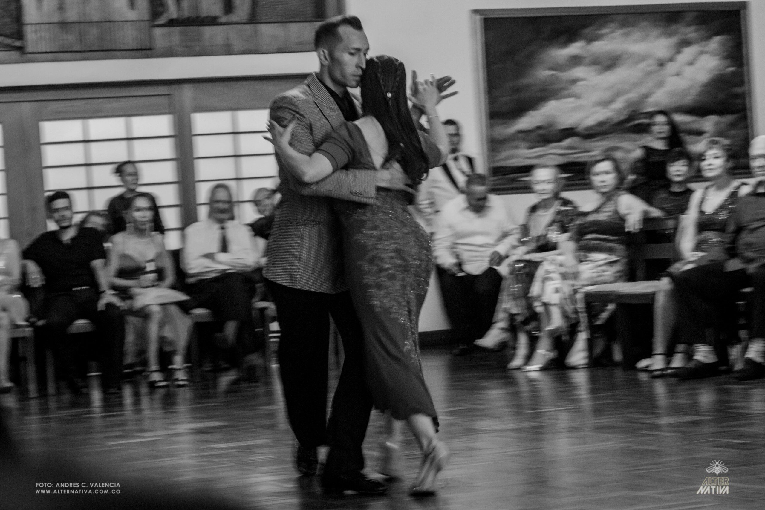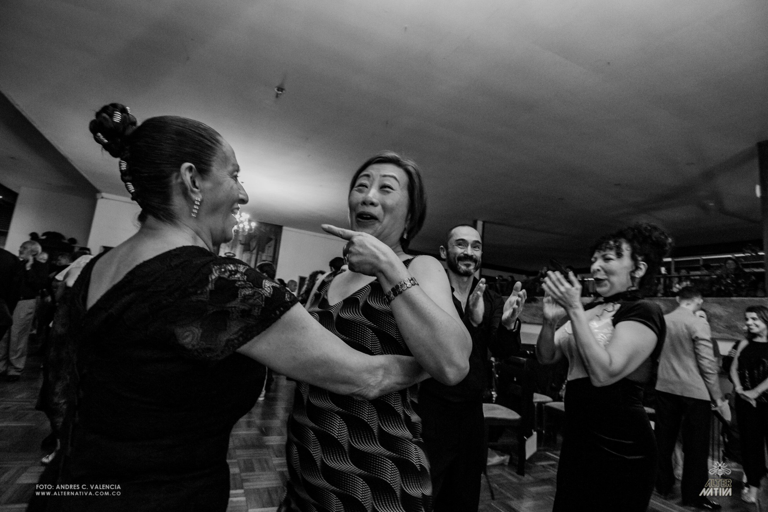A esa identidad de arrabal que se ha configurado en lo local, el Colombia Tango Festival pone en relevancia un oficio dentro de la milonga que pocos conocen: Los taxi dancers; son bailarines contratados para garantizar que nadie se quede sentado. El ejercicio de este oficio es presentado como una solución práctica dentro del festival. A primera vista, parece una forma amable de inclusión: garantizar que nadie se quede sin pareja en la milonga. Pero la estructura que lo sostiene pertenece a una economía, donde el saber y oficio del bailarín se convierte en un servicio, y el acto de bailar en un intercambio transaccional. Nadie lo llama abiertamente así, pero la lógica es inconfundible: alguien paga para que otro lo acompañe, para no ser invisible, para tener acceso al contacto físico y al rito del baile. El taxi dancer —esa figura contratada para circular de mesa en mesa, de silla en silla— evita la condena social del cuerpo quieto, del cuerpo que mira pero no participa.
