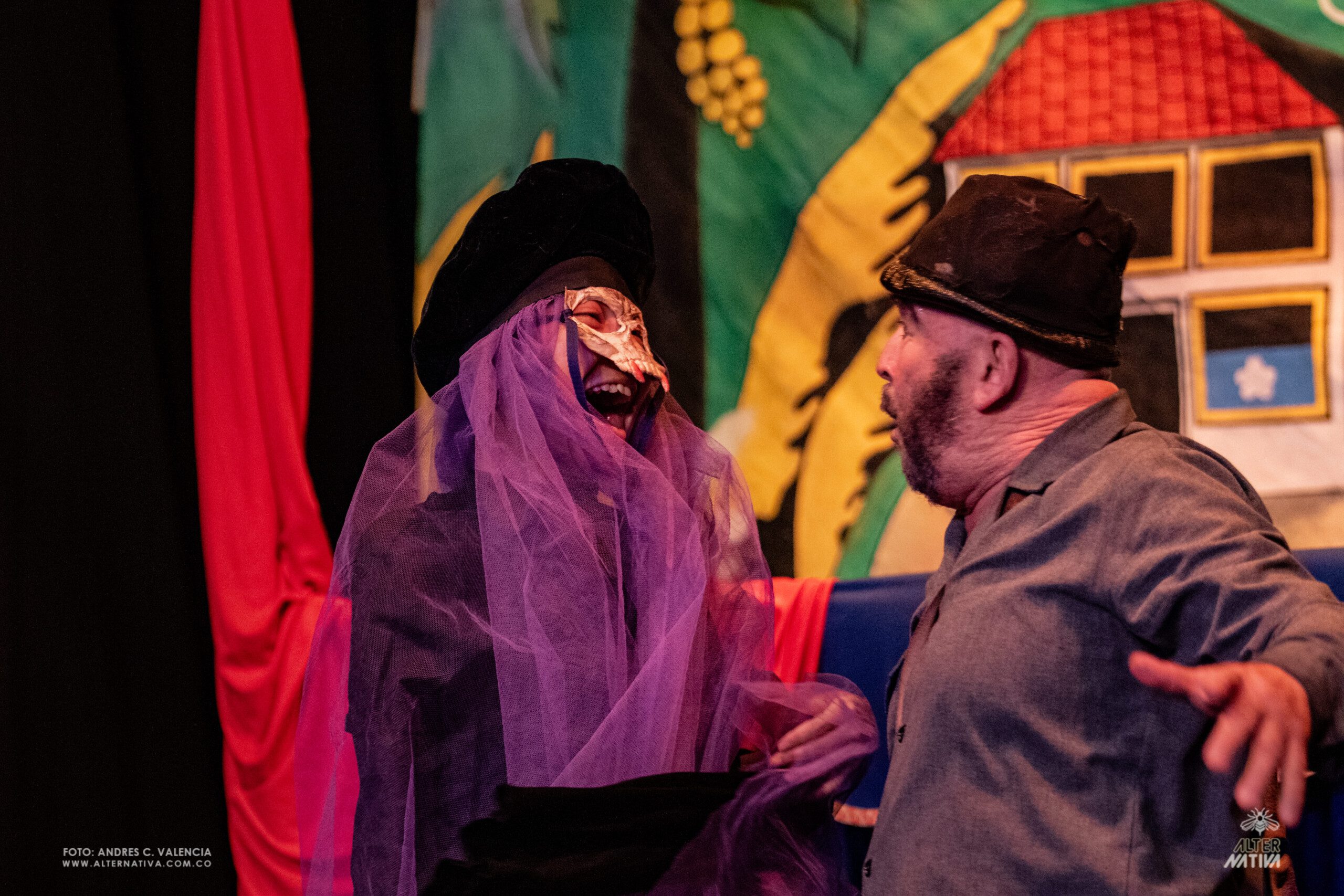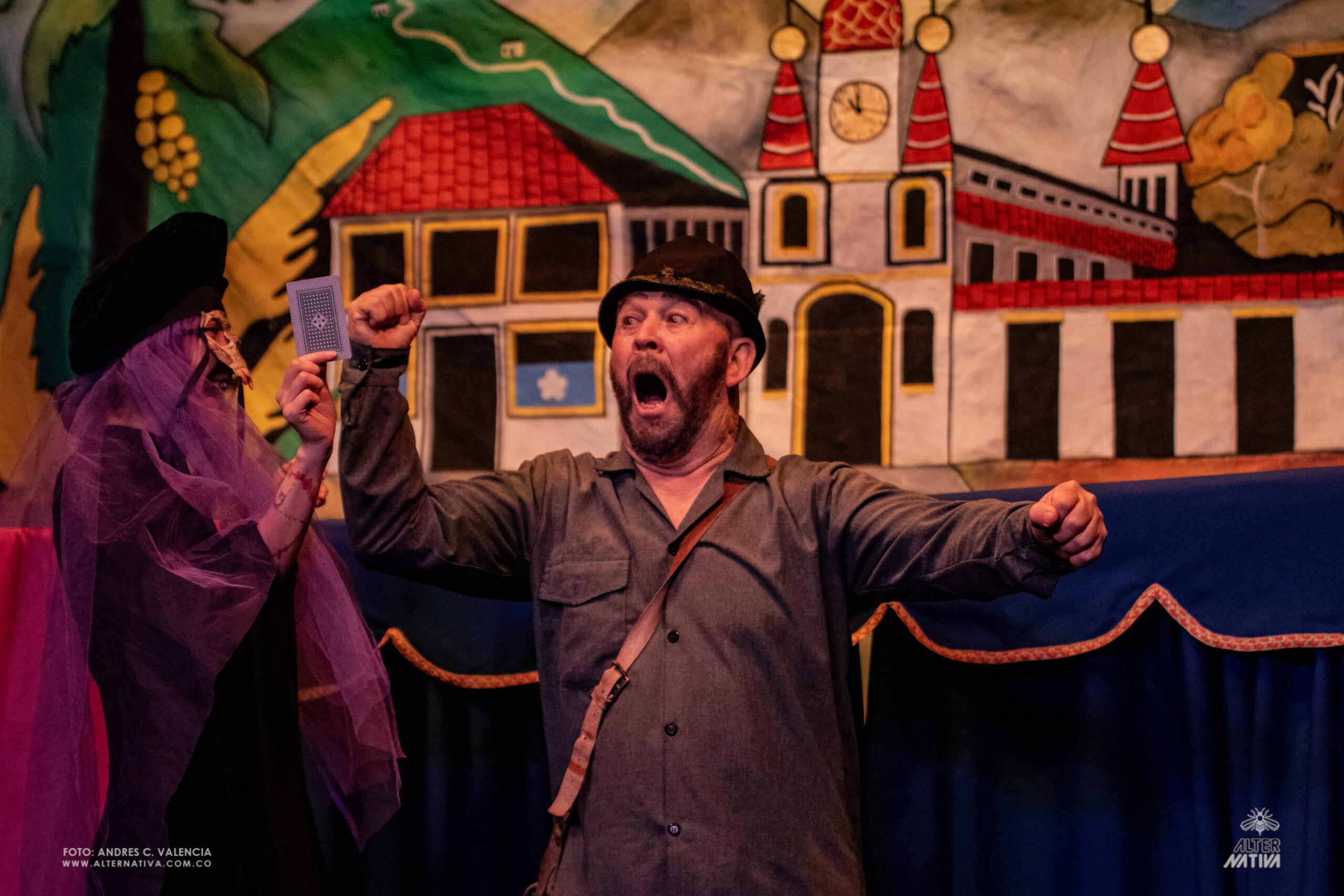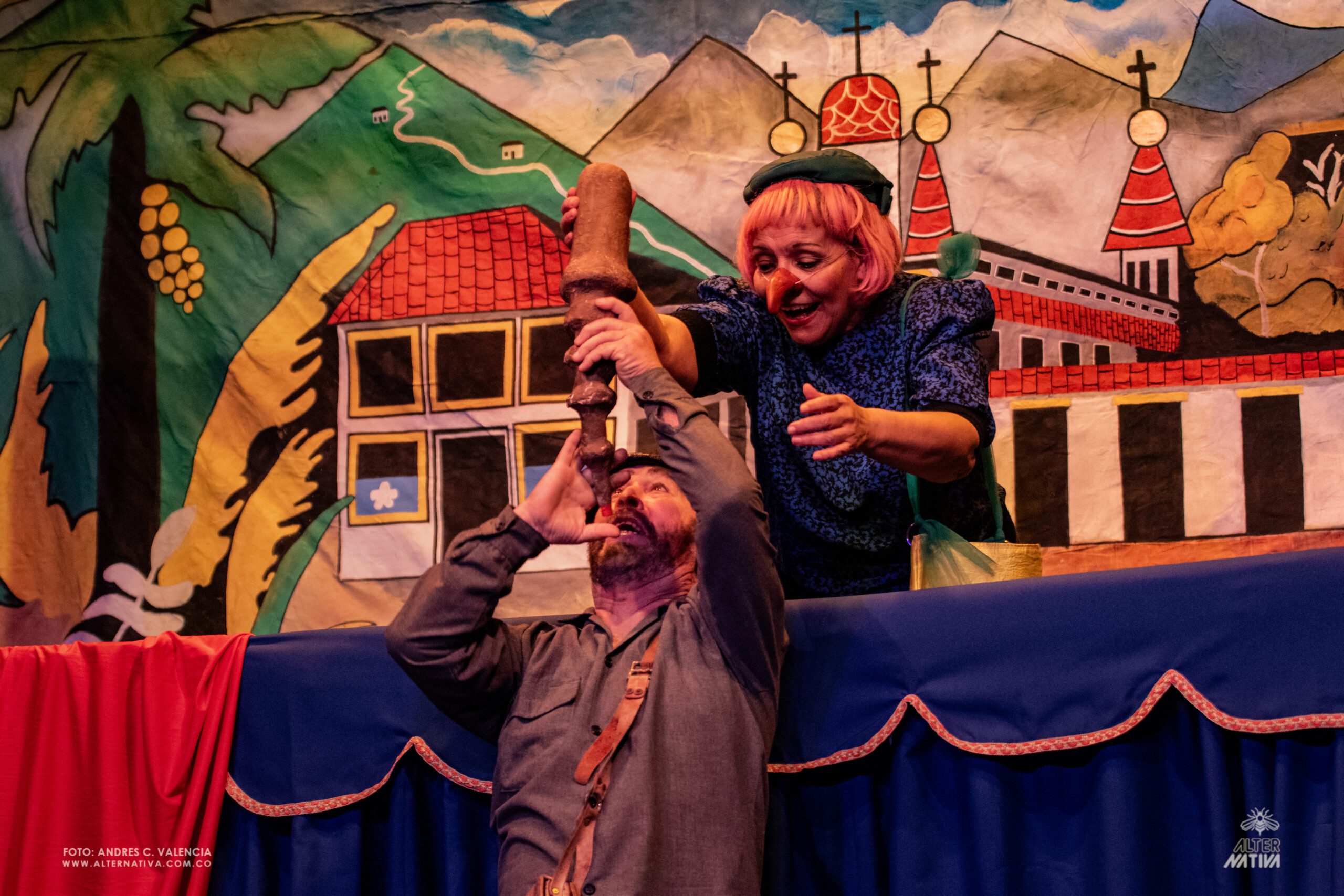 Por otro lado, tenemos a Helena Galvis, que interpreta a la coqueta Matilde y encarna, a su vez, a la maligna Gripa Chumacera. Su actuación es encantadora, y el modo en el que sonríe en conjunto con lo primero hace que su personaje sea, con todo, veraz y posible. Sabemos que nadie habla como Matilde o acaso se ríe como la Gripa Chumacera, estos juicios son imputables a ella como a cualquier mujer. Y, sin embargo, podemos llegar a creer que fuera de la función, ha de haber alguien que se comporte de tal modo. Hay una autenticidad y vehemencia con la que evoca sus diálogos, cosa que refuerza con su gran carisma e interpretación. No obstante, podrá haber engañado a gran parte del público en lo que trancisionaba de un personaje a otro; pero a mí no, y pienso que lo único que la delató fueron sus tacones, que no se cambió en toda la función; solo así supe que Matilde y la Gripe Chumacera eran, de hecho, la misma actriz.