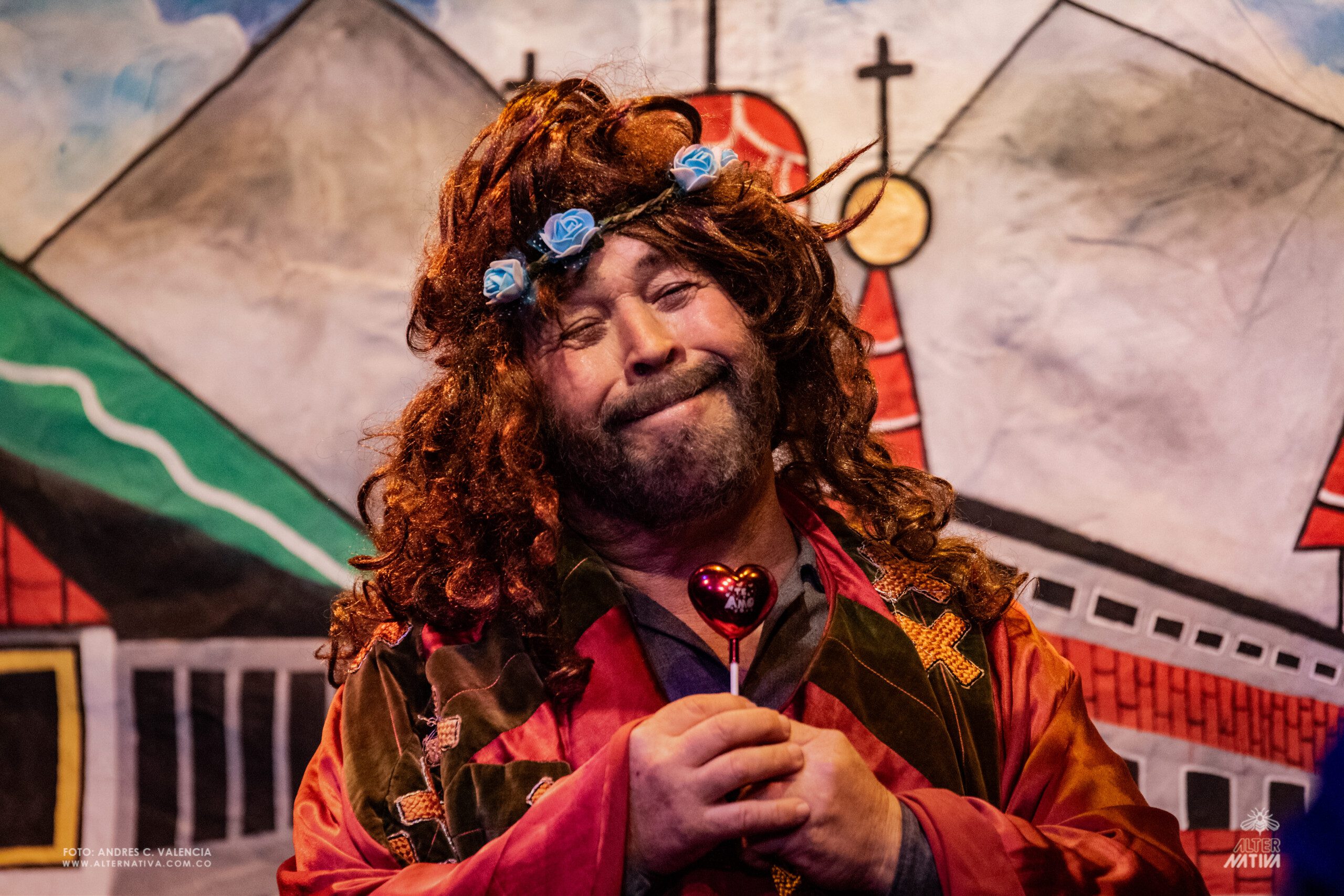 A excepción de la vestimenta de Manuelucho, que evoca más a un leñador de cuento, el resto del elenco deslumbra con sus coloridas indumentarias, que van acorde a la personalidad de sus encarnaciones. David Gómez se ha robado el espectáculo con su enorme carisma y su comedia; interpreta a Odín, una especie de narrador, de cuenta cuentos, que nos acompaña durante los momentos más cruciales de la obra para explicar y divertir. Como Lucifer, es brillante. Hace un Diavolo sensual, burlesco y erótico. Este detalle me resulta sumamente remarcable, pues el diablo no puede representar otra cosa que la tentación a través de la que es su mejor herramienta, la sensualidad.