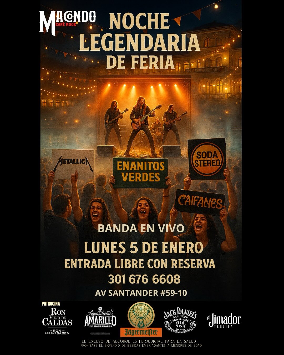 Durante la Feria de Manizales, el circuito alternativo de la ciudad también tendrá un espacio propio en Macondo Café Rock, que desarrollará una programación especial entre el 2 y el 11 de enero. El bar, reconocido como uno de los puntos de encuentro históricos de la escena rock y alternativa local, propone una agenda pensada para quienes entienden la feria como un territorio diverso, nocturno y musical.