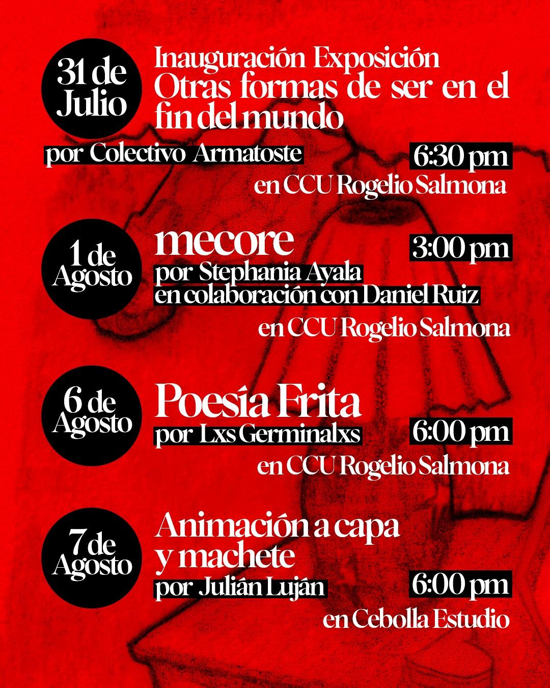 - mecore x @stephaniaayalag en colaboración con @_nadaniel en el CCU Rogelio Salmona 1 de agosto de 3:00 p.m