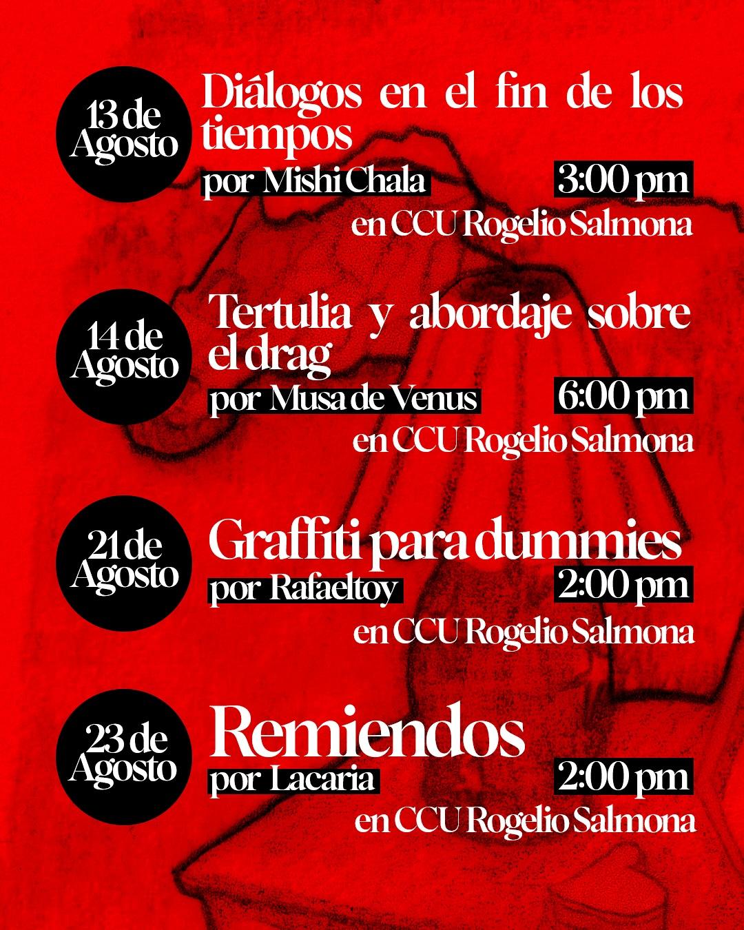 - Diálogos en el fin de los tiempos x @mishi_chala en el CCU Rogelio Salmona 13 de agosto de 3:00 p.m