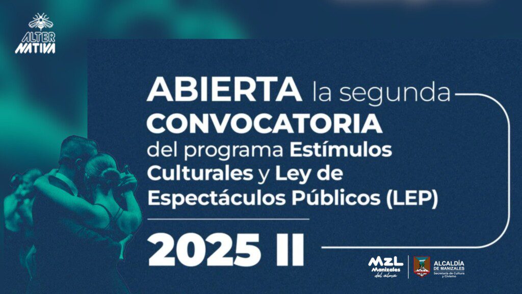 La Alcaldía de Manizales, a través de la Secretaría de Cultura y Civismo, lanzó dos nuevas convocatorias para fortalecer el sector cultural en la capital de Caldas durante el segundo semestre de 2025. Se trata del Programa de Estímulos Culturales y Artísticos y la Ley de Espectáculos Públicos (LEP), los cuales cuentan con $200 millones para cada uno. … Sigue leyendo Abiertas las segundas convocatorias 2025 para el Programa de Estímulos Culturales y la Ley de Espectáculos Públicos