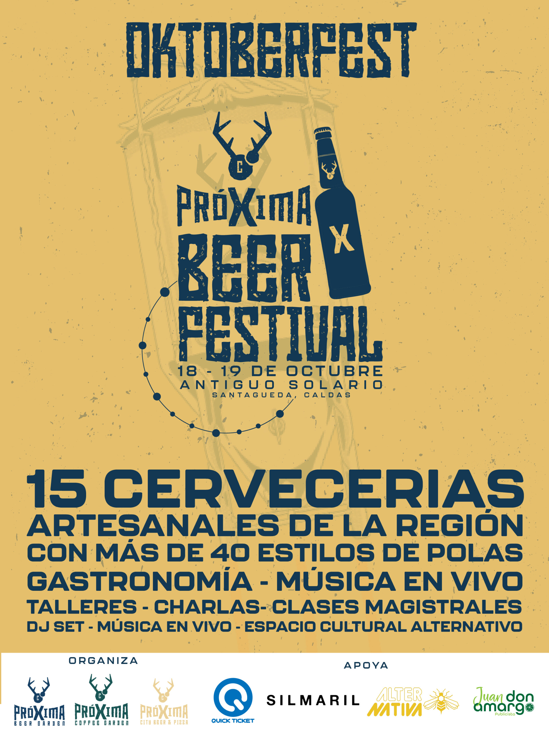 El Próxima Beer Festival es una iniciativa organizada por Próxima Beer Garden, Próxima Coffee Garden y Próxima City Beer & Pizza, con el apoyo de Quick Ticket, Silmaril, Revista Alternativa y Juan Don Amargo Producciones. Además, cuenta con la colaboración de Gea, encargados de los talleres de bienestar y conexión natural, y la participación de diversas cervecerías artesanales del Eje Cafetero.