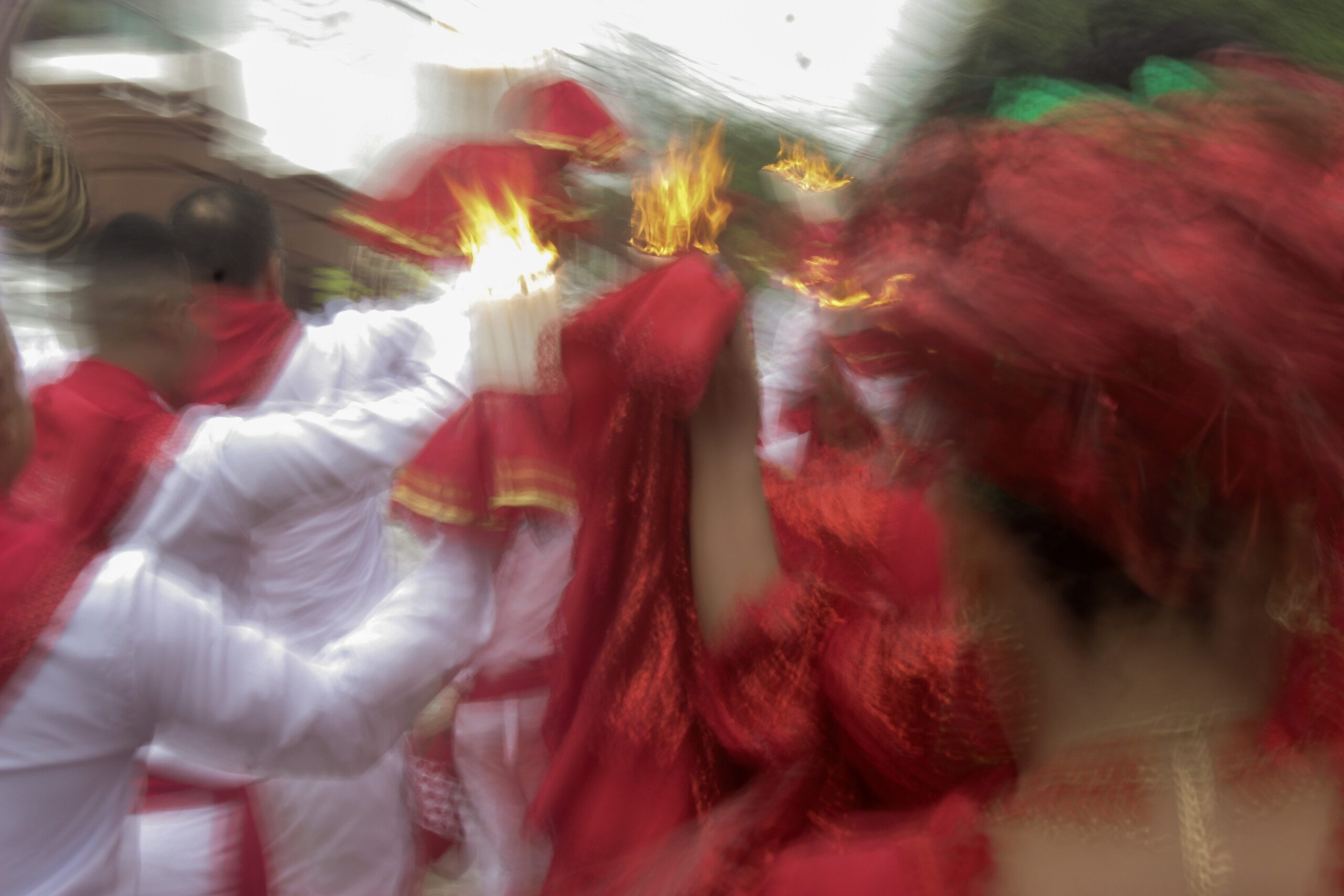 El rojo vibrante de estas vestimentas no es solo color: es euforia contenida, es memoria en movimiento. Un ritual de belleza, armonía y femineidad creadora que se proyecta hacia las nuevas generaciones.